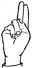 На ћирилици написано ДЕНИС АНЂУШИЋ састоји се из 12 слова [?]. Исписано ћириличном једноручном азбуком за глувонеме: